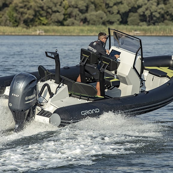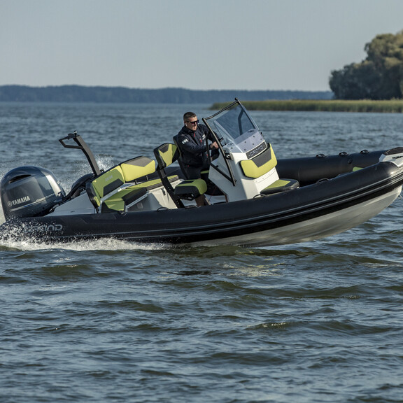 The dynamic design of D600 Active has been worked out for active water sports and fishing. A new hull design is specially accommodated for comfortable arrangement of fishing rods and other accessories for successful fishing. Not to mention the solid, durable and elegant (made of stainless steel and black powdercoated) waterski towing mast with all-round light on the top.