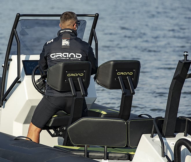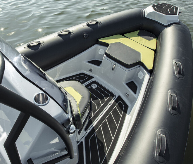 If you are passionate about aggressive wave riding, you’ll definitely appreciate adjustable sports seats which are very comfortable in a rough sea because the main load is compensated by your legs rather than your back. For those who enjoy a slower pace, the rear sofa seating fitted with soft cushions and a high seat back allows you to relax in comfort, admiring the limitlessness of water and heavens.